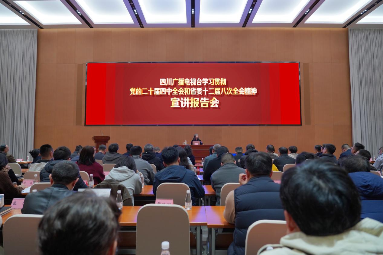 12月4日,四川广播电视台举办学习贯彻党的二十届四中全会和省委十二届八次全会精神宣讲报告会,邀请中共四川省委党校、四川行政学院党建教研部教授、硕士生导师潘传辉作专题宣讲。在家台党委成员,台长助理、行政总监、编务总监、运营总监,各单位(部门)正副职及各党支部书记、首席、助理,团委书记、青年理论学习小组组长,以及离退休党员代表等180余人参加学习。