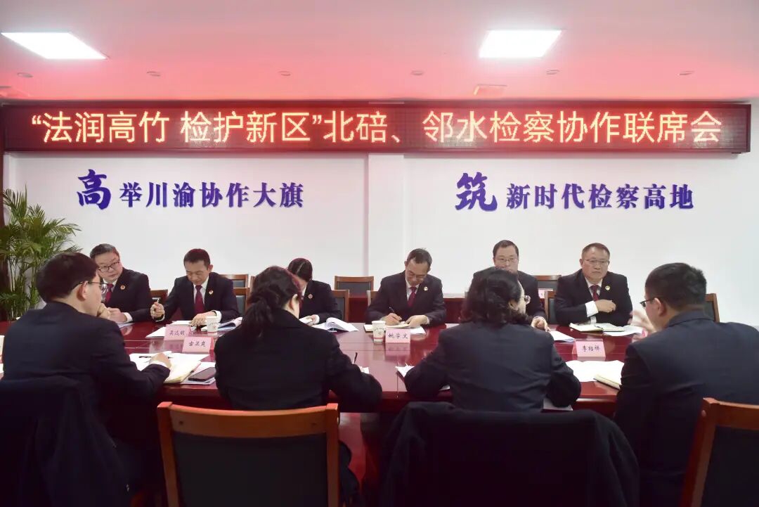 为更好服务保障成渝地区双城经济圈建设,凝聚跨区域检察合力,近日,四川省邻水县检察院与重庆市北碚区检察院在川渝高竹新区召开联席会,围绕深化跨区域检察协作进行会商,并签订了《检察协作框架协议》。