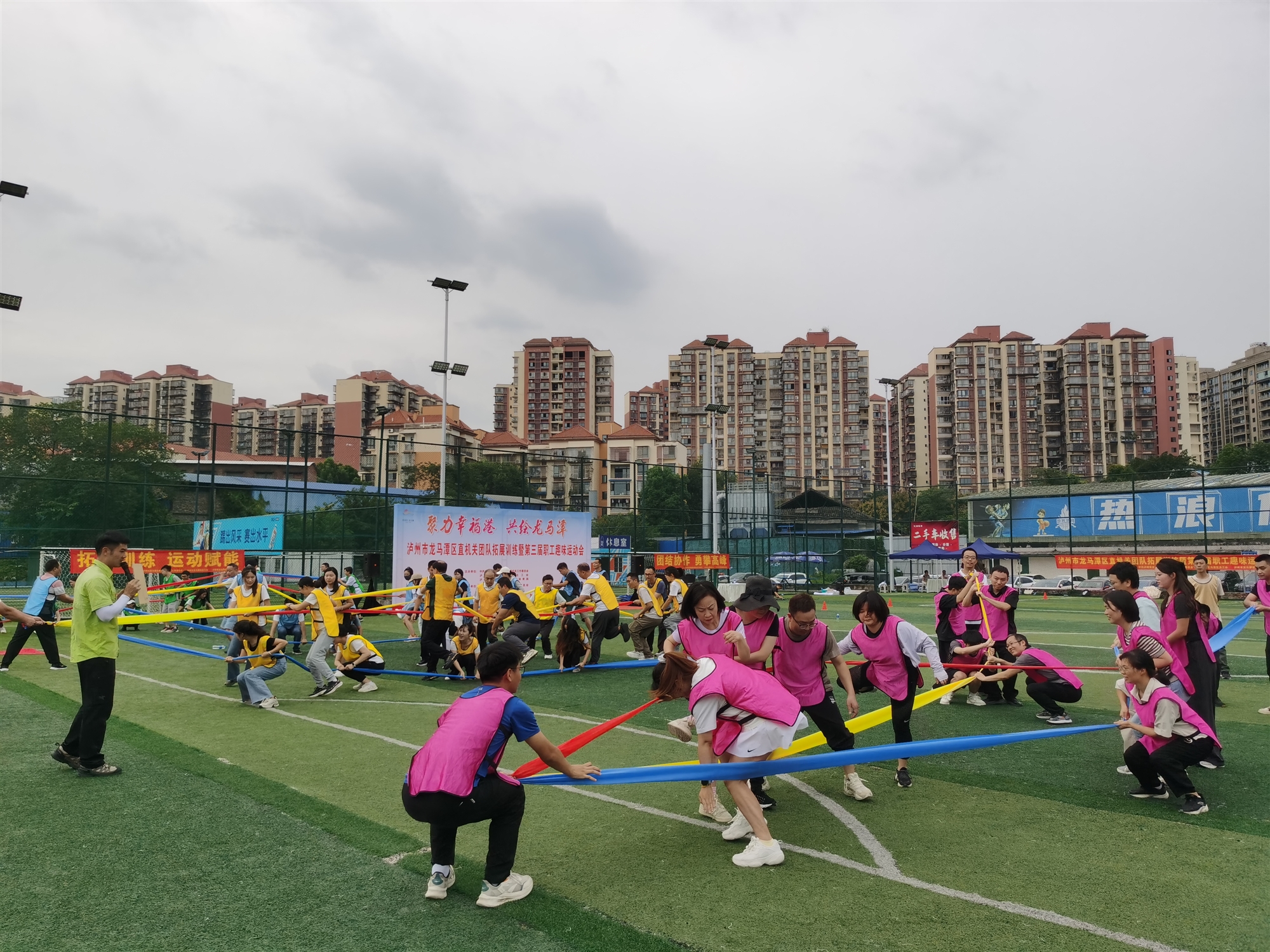 为丰富全区机关干部职工的文体生活,锤炼团队协作精神,彰显机关队伍积极向上的精神风貌,由区委区直机关工委、区总工会、区教育和体育局联合主办,区直机关工会委员会承办的 2025年区直机关团队拓展训练暨第三届职工趣味运动会,于 9 月25日在龙马潭区众拓足球公园活力开幕。