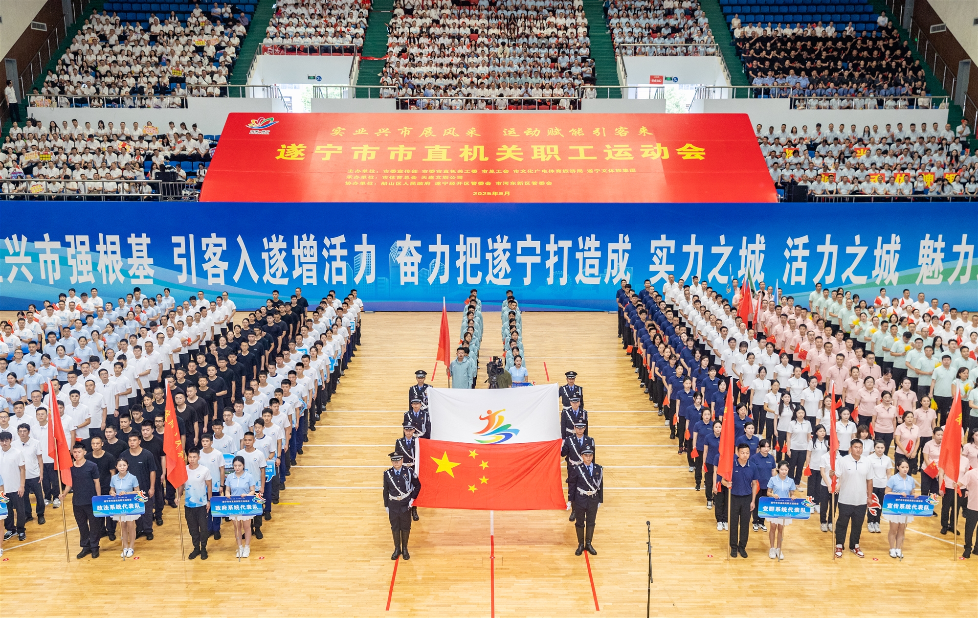 9 月 28 日,遂宁市市直机关职工运动会开幕式在船山体育馆举行。市领导出席开幕式并与干部职工共同参与比赛,以运动活力凝聚发展合力,为遂宁高质量跨越式发展注入昂扬动力。