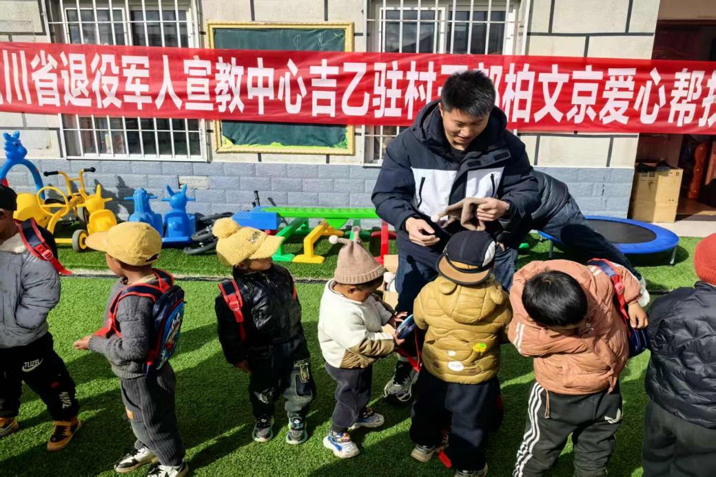11 月的稻城寒意渐浓,省退役军人宣传教育中心驻村干部柏文京却为吉乙村幼儿园的孩子们带来了暖意 —— 他和驻村工作队一同送来装满书包、围巾、手套的纸箱,用实际行动书写着一本温暖的 “童” 心账。