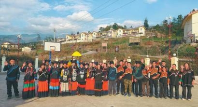 十一月十三日午后,凉山州美姑县龙门乡塔哈村,三十多名群众欢聚在新居前。去年九月,塔哈村易地扶贫搬迁项目全部建成,村民搬入花园式的两层小楼。四川日报全媒体记者 尹钢摄