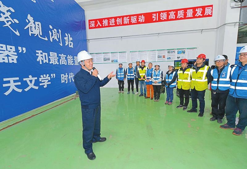 六月二十四日,省委书记彭清华来到位于稻城县桑堆镇海子山4410米海拔的国家高海拔宇宙线观测站调研,看望科技工作者和工程技术人员,察看了解探测器阵列装置运行及开展科学研究情况,向大家介绍了省委全会对我省创新发展作出的战略性擘画和系统性部署。四川日报全媒体记者 欧阳杰 摄