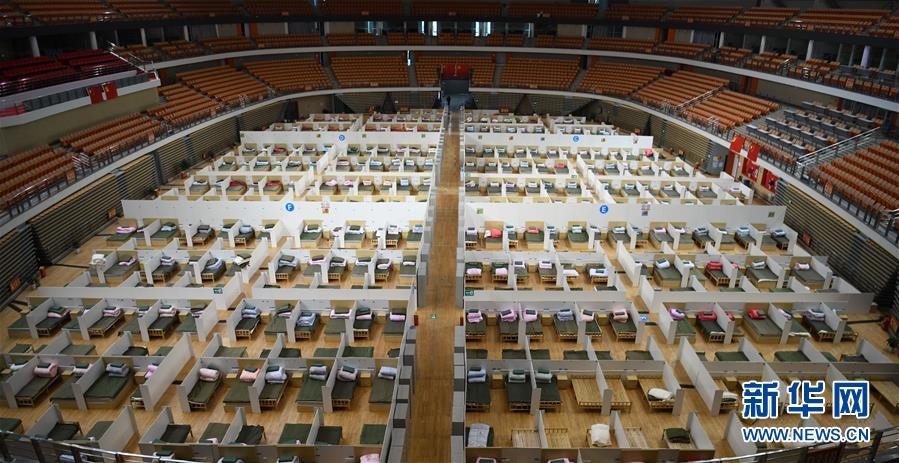 这是武汉体育中心方舱医院(2月12日摄)。新华社记者 程敏 摄