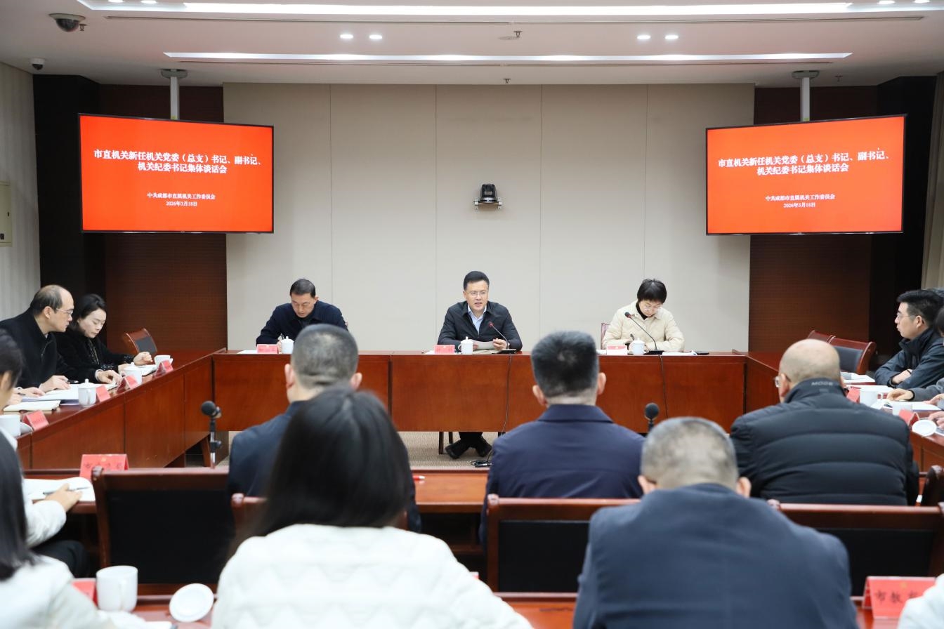 3月18日,成都市直机关工委举行2026年度新任机关党委(总支)书记、副书记、机关纪委书记集体谈话。市直机关工委常务副书记钟科出席并讲话。市直各部门(单位)20余名新任机关党委书记、副书记以及机关纪委书记参加谈话。