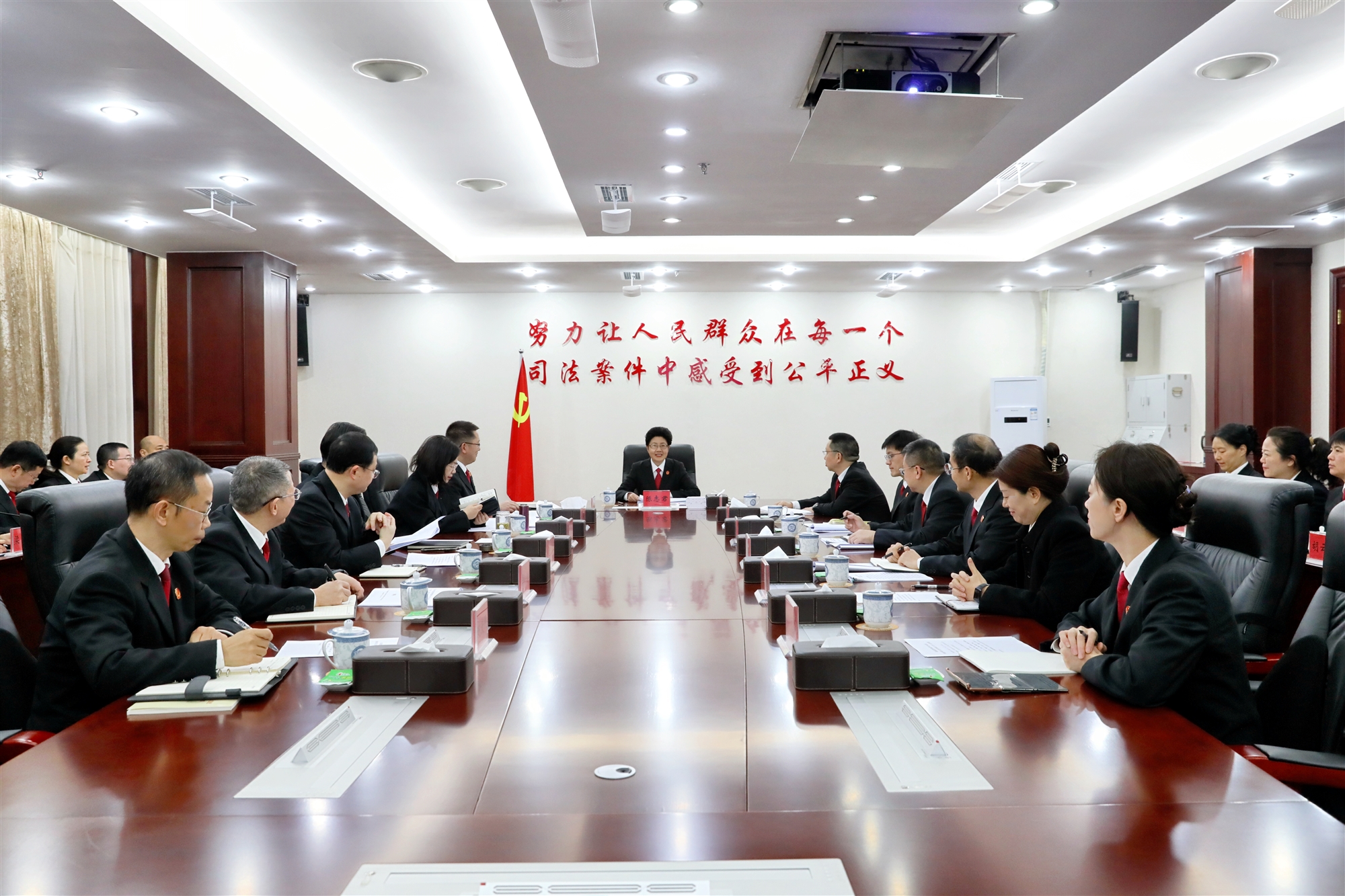 会议要求,要将党的领导贯穿法院工作全过程各方面。立足法院“政治性很强的业务机关、业务性很强的政治机关”定位,把党的绝对领导深度融入审判执行各环节、内嵌于司法运行各维度。以全面履职、公正司法践行党的领导要求,以中国式法院管理彰显领导效能,强化审判管理完善,依托“一张网”推进数字法院建设,持续提升司法理念、机制与能力。以过硬素质筑牢党的领导堡垒,统筹推进政治、业务、职业道德素质建设,不断提高“从政治上看、从法治上办”的能力,增强司法裁判的公正性、权威性与稳定性。