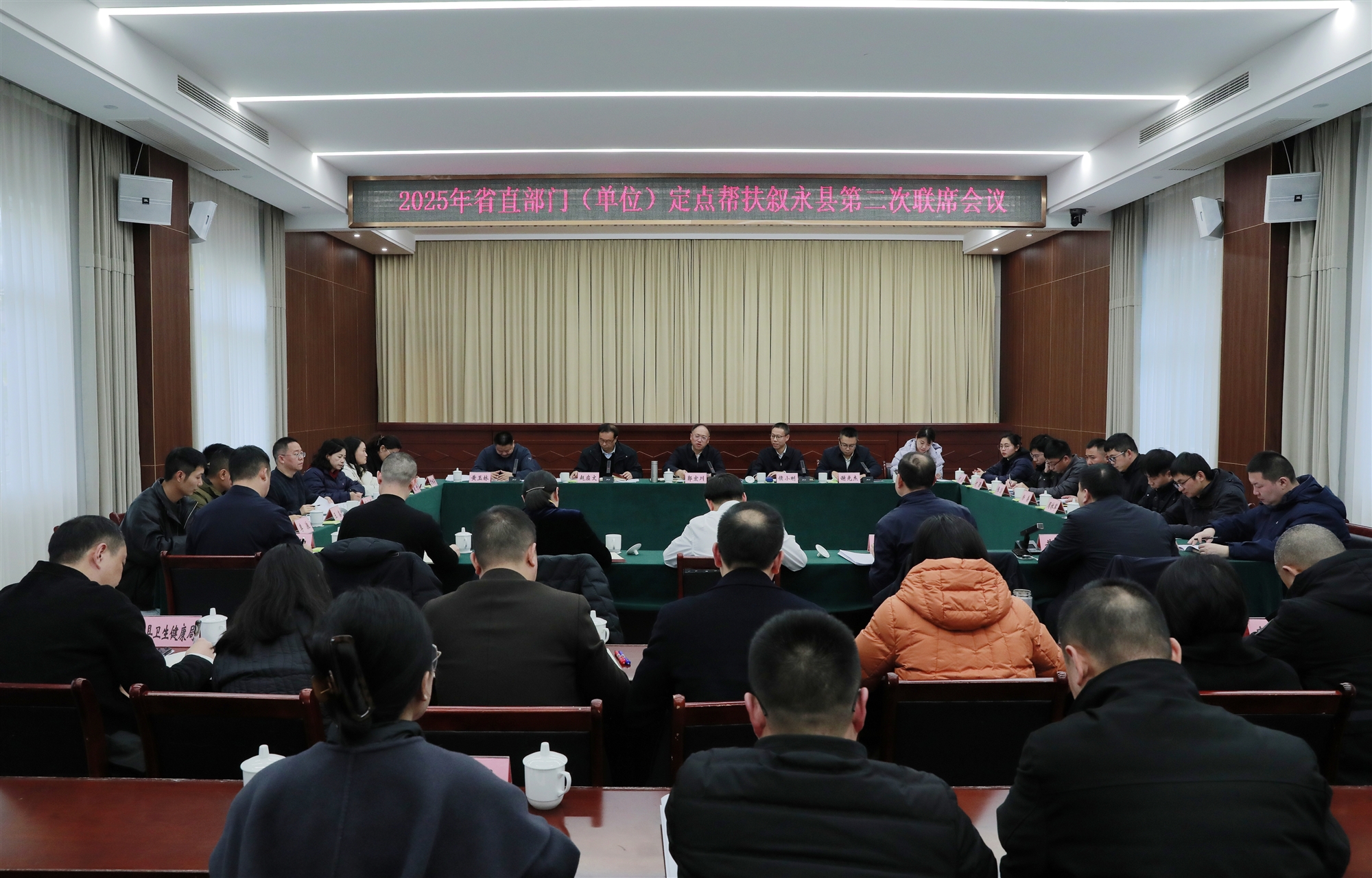 12月15日,省信访局牵头召开2025年省直部门(单位)定点帮扶叙永县第二次联席会议,深入学习贯彻习近平总书记关于“三农”工作的重要论述,学习贯彻党的二十届四中全会精神、中央经济工作会议精神和省委十二届八次全会精神,总结前期工作,分析形势任务,共同研究下步重点工作。省信访局党组书记、局长郭宏川出席会议并讲话。省信访局党组成员、副局长、机关党委书记侯小刚主持会议。泸州市和叙永县有关负责同志参加会议。