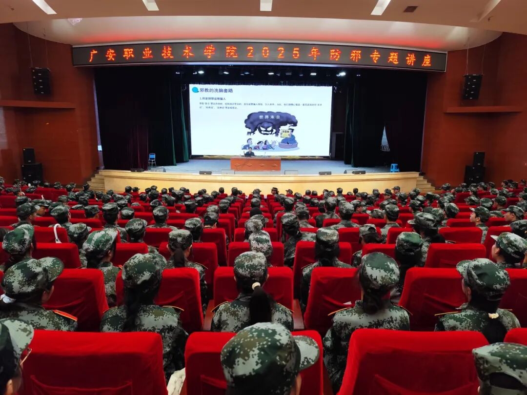 10月20日,广安市委政法委在广安职业技术学院组织开展“筑牢思想防线 守护青春梦想”反邪教主题宣讲活动。