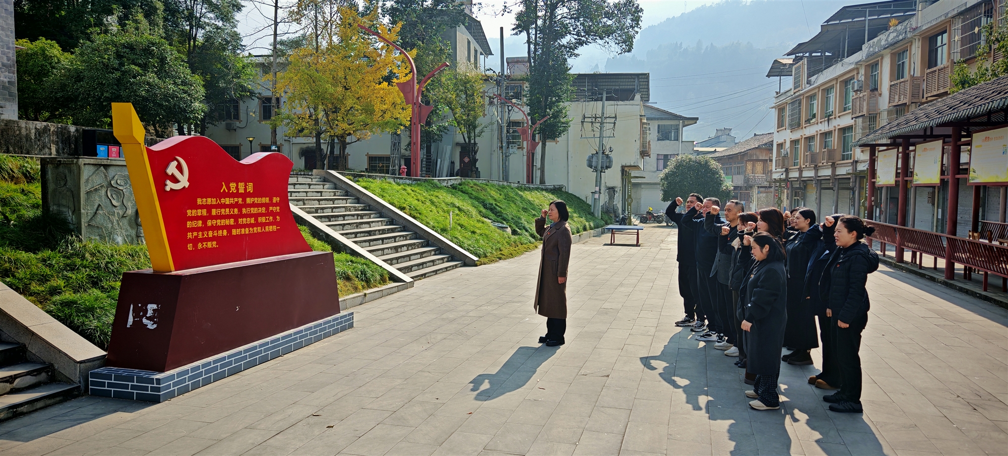 抵达北川后,党员们首先来到北川地震遗址纪念馆。置身纪念馆,在庄严肃穆的氛围中,同志们纷纷驻足,肃立默哀,深切缅怀遇难同胞。随后,一行人来到北川红军长征纪念馆,瞻仰烈士遗迹,感受烽火年代红色无私奉献、无畏牺牲的伟大革命精神。在鲜红的党旗前,支部副书记带领大家面向党旗再次重温入党誓词,铿锵有力的誓言响彻纪念馆广场,既是对革命先烈的告慰,更是对初心使命的庄严承诺。