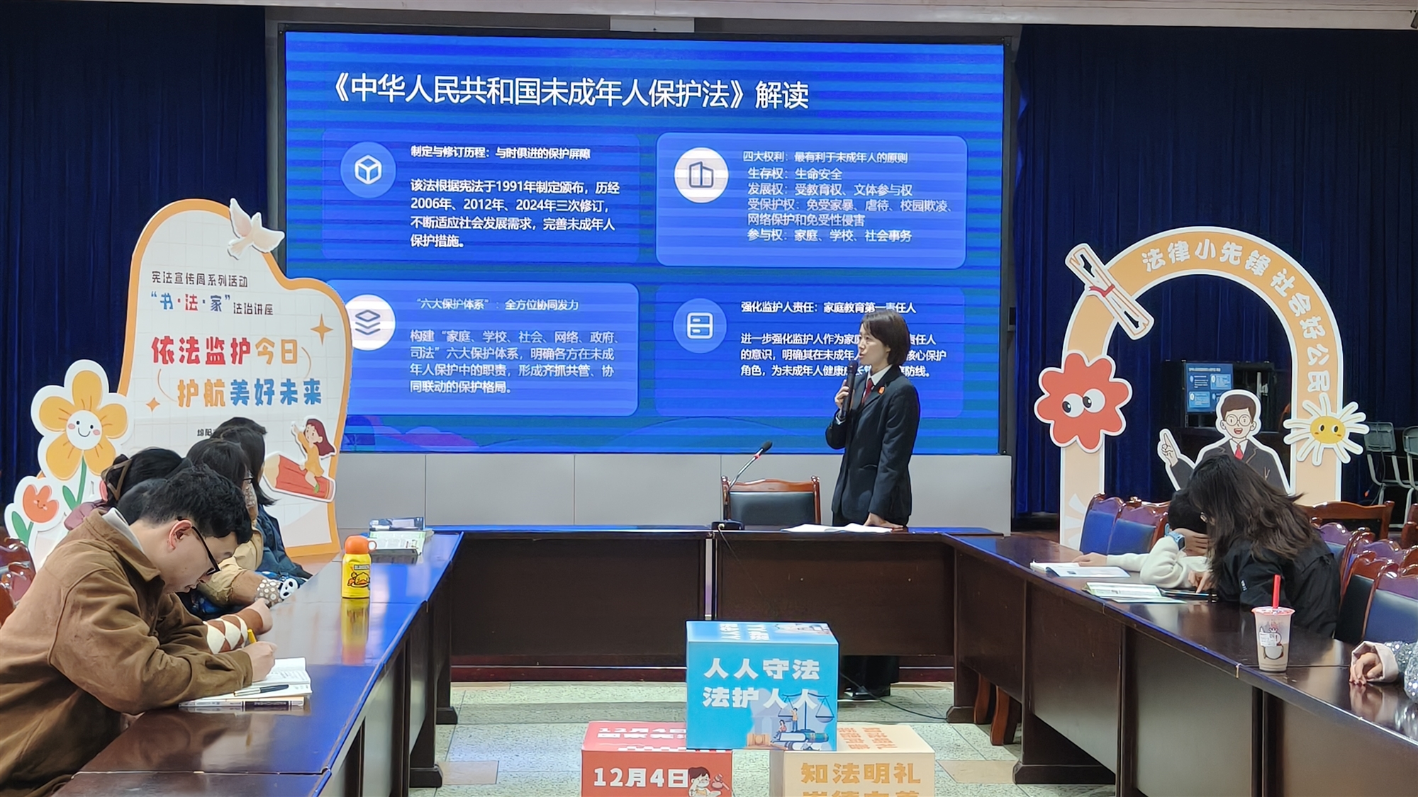 讲座结合《未成年人保护法》《中华人民共和国民法典》中涉未成年人监护的抚养、教育、保护核心职责,通过真实案例详解网络安全防护、预防性侵害等实操方法,并明确未尽监护职责的法律后果。活动现场设置法治咨询点,提供宪法等法律书籍查阅服务,并专为儿童准备漫画版法律读物,让孩子们在趣味阅读中了解法律知识。