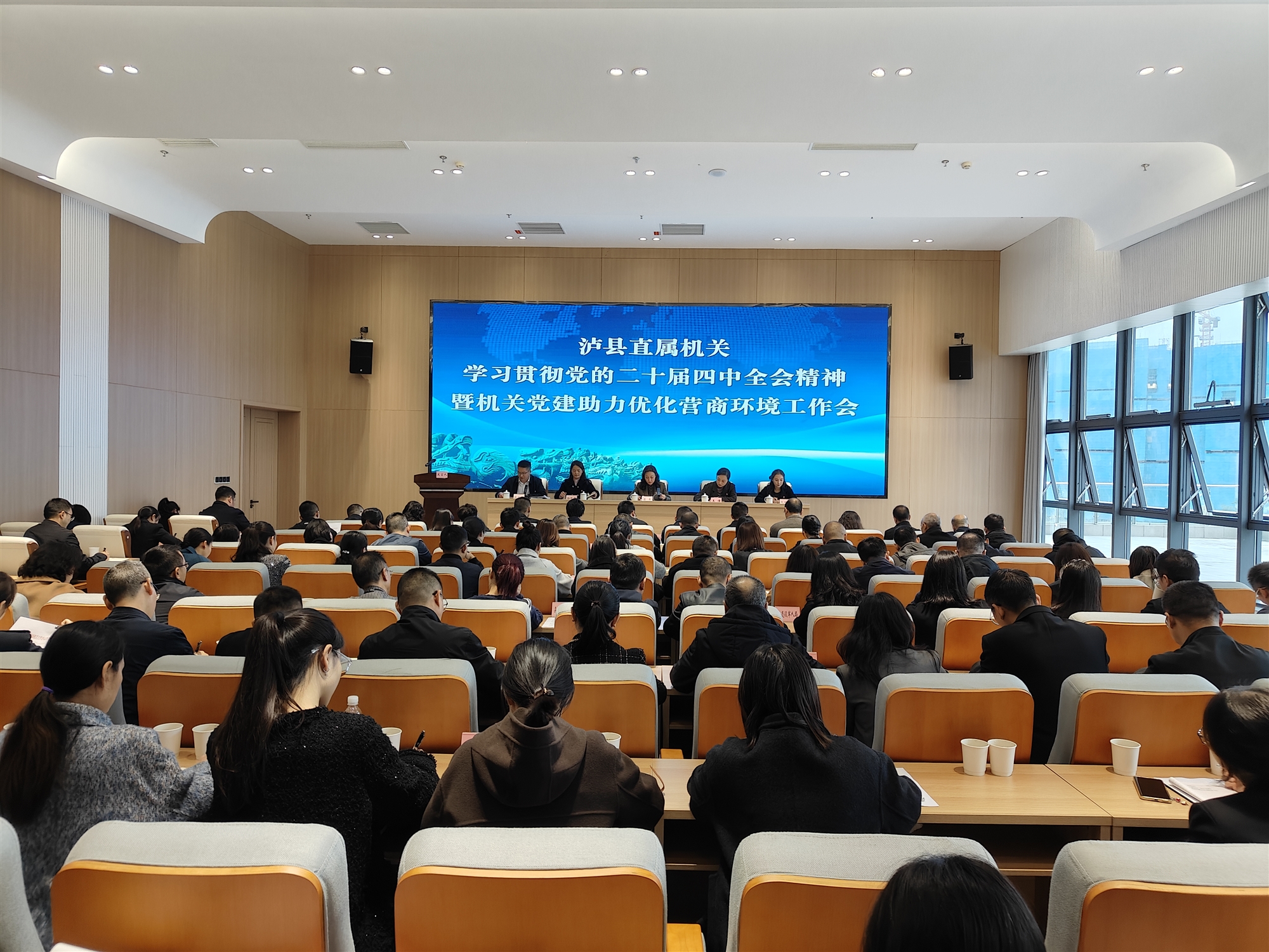 为深入学习贯彻党的二十届四中全会精神,推动以高质量党建促进优化营商环境高质量发展。11月10日,泸县直属机关学习贯彻党的二十届四中全会精神暨机关党建助力优化营商环境工作会在县行政审批局召开。