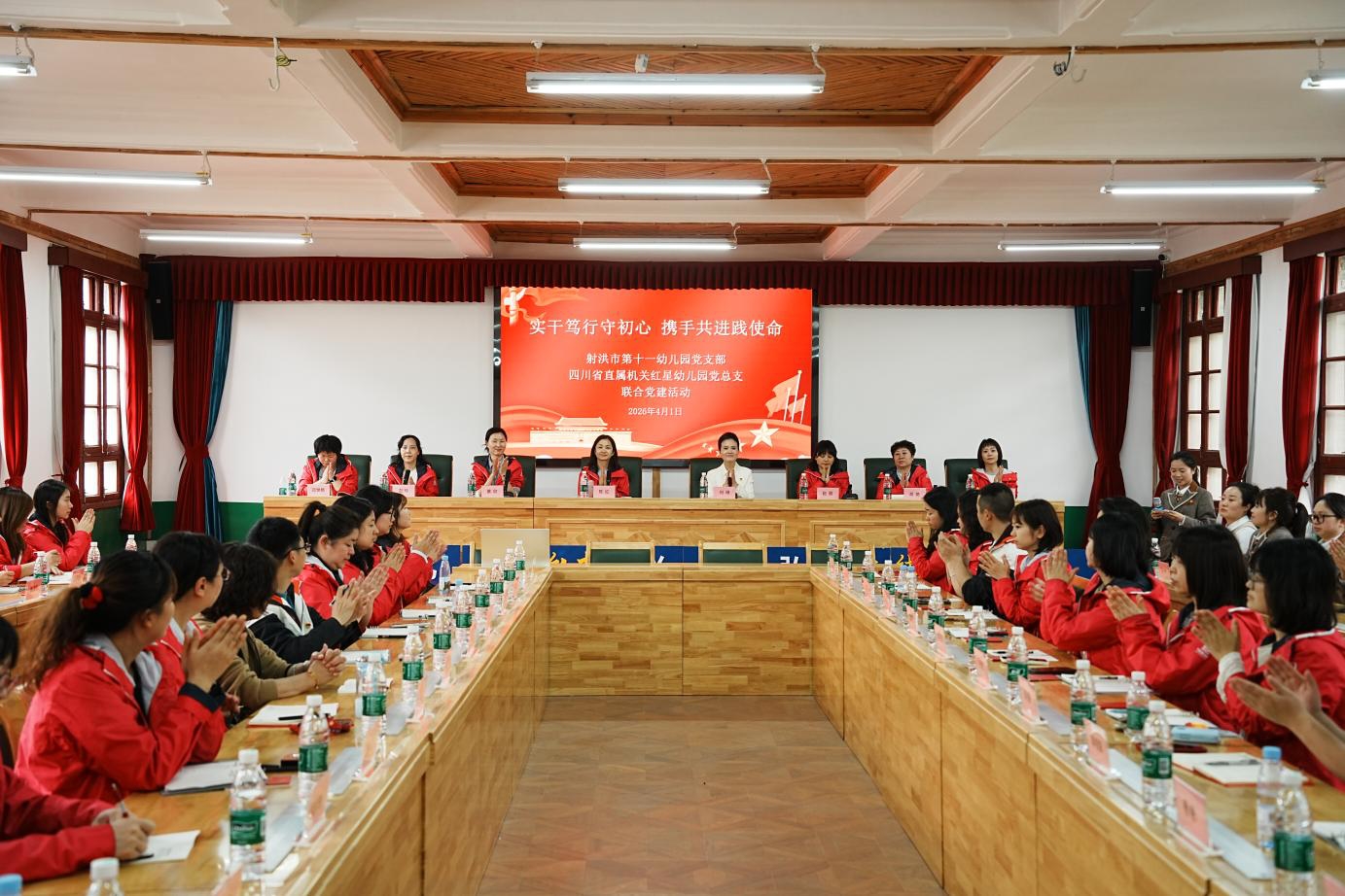 近日,四川省直属机关红星幼儿园党总支组织在职及退休党员赴射洪市,与射洪市第十一幼儿园党支部联合开展 “实干笃行守初心 携手共进践使命” 主题党日活动,推动党建与学前教育业务深度融合、协同共进。